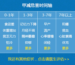 甲减早期症状隐匿、病情较轻,易被患者忽视,而隐藏在背后的危害却很惊人,甲减不仅会造成不孕不育,还会导致患者神经精神系统衰弱,发生心绞痛与心衰,病情严重时甚至发生昏迷休克甚至死亡。医师提醒,一旦出现了相似症状,请及时选择正规的专治甲状腺病的医院接受专业治疗,以免病情恶化。